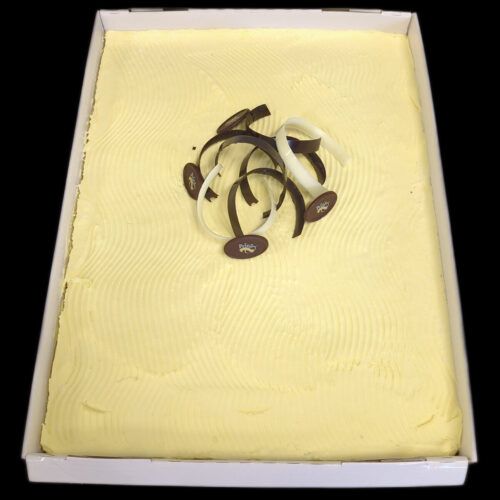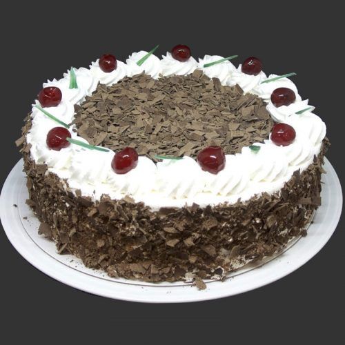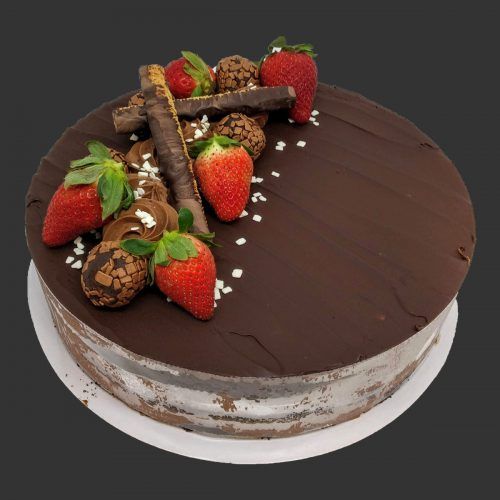 Chocolate Cake made with rich dark chocolate sponge, soaked with rum infused syrup, layered with our orange scented chocolate truffle cream, made from couverture chocolate, cream & custard.